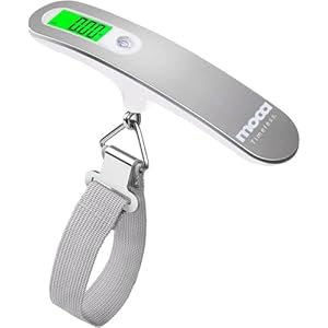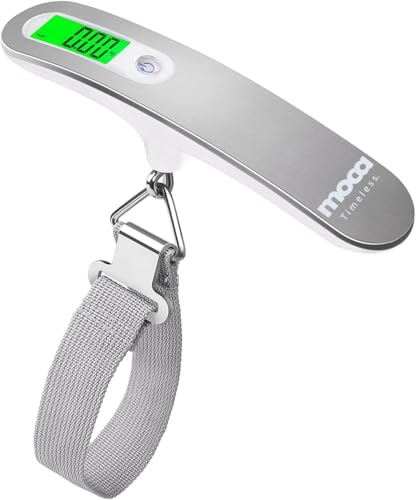 Silver Digital Luggage Scale â Portable Travel Scale with Green Backlit LCD, Strong Strap & Hook, 110 lb / 50 kg Capacity, 0.1 lb / 50 g Accuracy, Auto-Off, Tare & Unit Switch â Compact Handheld