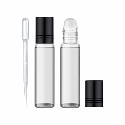 PACKCESS 10ml Roll On Glass Bottle, Clear Transparent, Empty Refillable, Reusable for Under Eye, Perfumes, Attar, Travel, Lip Gloss, DIY, Cosmetics, Essential Oils Set Of (12)