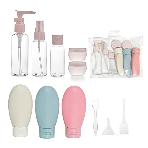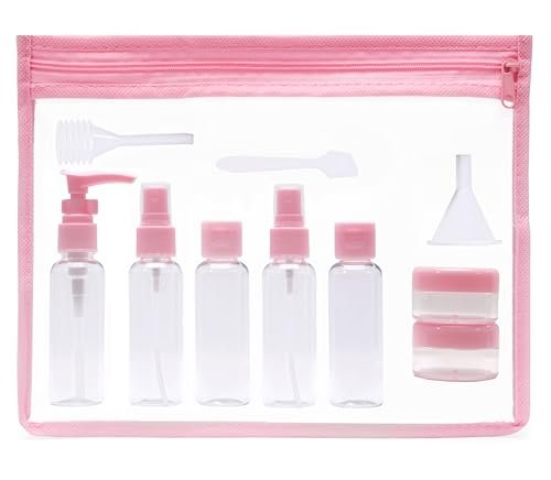 INOVERA (LABEL) 10 Pcs Travel Toiletry Bottles Kit – Refillable Spray Bottle – Cosmetic Containers for Shampoo, Body Lotion, Cream – Travelling Toiletries Container Set (Pink)
