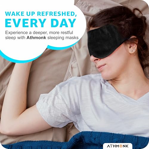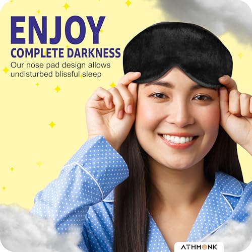 CRAFTED WITH SUPER SOFT VELVET FABRIC- Athmonk eyes mask for sleeping is made up of soft breathable material. The cushioned eyes mask ensures good sleep. Across other sleeping accessories, Athmonk sleep mask has smooth and velvety texture providing ultimate comfort for the eyes. The eye mask for sleeping kids assures complete rest. While sleeping, Athmonk night mask for eyes blocks rays of light from disturbing your sleep. Therefore, assuring complete relaxation.
