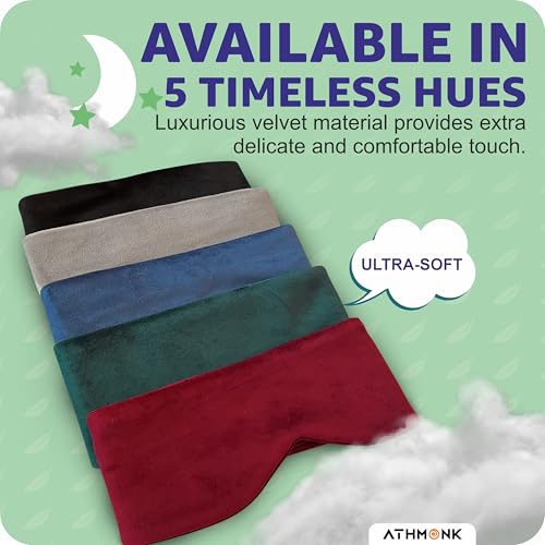 EXTRA WIDE DESIGN FOR COMPLETE BLACKOUT- Do you get irritated when someone turn on lights in the middle or the night? Well, eye masks for sleeping can be your saviour. Athmonk eye shades for sleeping is fabricated with soft non-sheer material. Athmonk blindfold for sleeping restricts the rays of light present around the room. By wearing Athmonk velvet backout eye mask, you can experience blissful sleep. For long journeys, sleeping mask for men is a basic necessity for good sleep.