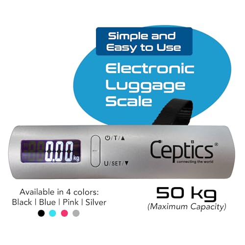 Ceptics Luggage Weighing Scale, Digital Weight Machine with LCD Display, 50 Kg Capacity, Portable Weight Machine for Luggage, Bags, Ideal for Travel, Home, Shop Use, Sleek and Durable, Silver