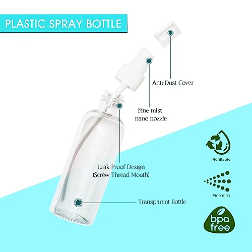 LIGHTWEIGHT AND PORTABLE: Small spray bottle convenient to carry It is very portable for Travel and Household Refillable empty mist spray bottles are perfect for oils, alcohol, face spray, make-up water, pillow mist, witch hazel, deodorant, household cleaner, perfume, hair products, face spray and any other mixtures Empty spray bottle can be washed and reused