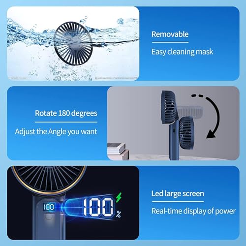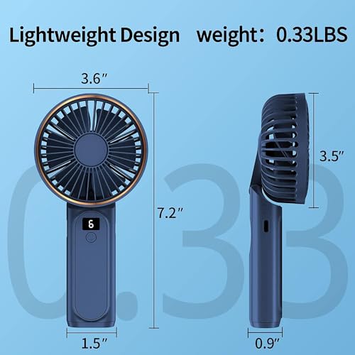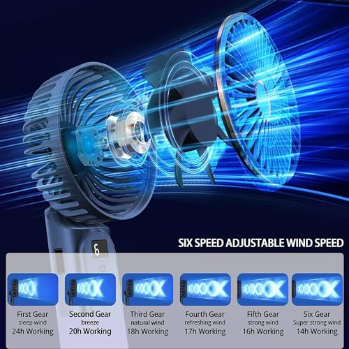 [Strong Wind with 6 Speeds] — hand fan with 6 adjustable speed, equipped with brushless motor that can generate strong airflow to cool you down in 2 seconds. Super quiet, noise is