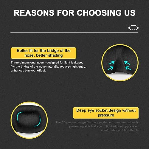 ✅ BREATHABLE MEMORY FOAM – Constructed with thin good-density memory foam, this eye mask is lightweight, very breathable, conforms to the structure of your face, and keeps light out while you are resting. The invisible ergonomic wing design also gives you comfort around the nose.